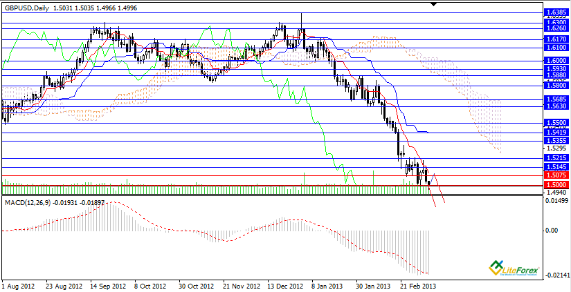 Пара GBPUSD снова торгуется на дне. Вчера британская валюта относительно доллара начала торговый день с резкого восстановления, на фоне благоприятных экономичских данных. После этого пару отбросило обратно к минимальным значениям, чему сопутствовало выступление Мервина Кинга. Он не высказал негатива по поводу экономики Британии, но тонко дал понять, что процентные ставки постоянно невозможно оставлять без изменений. Помимо этого, он сделал акцент на то, что комитет по монетарной политике будет продолжать следить за прогнозами инфляции, тем самым высказав возможность изменения монетарной политики в ближайшей перспективе. На эти высказывания незамедлительно отреагировали инвесторы, услышав в его словах призыв к действиям по стимулированию экономики дополнительным смягчением. Пара упала ниже уровня поддержки 1.5000. Сегодня стоит ждать новых потрясений, на повестке дня ключевая процентная ставка и покупки активов Банка Англии.
